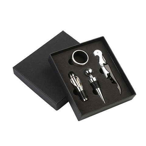 Bán buôn 4 cái thép không gỉ rượu vang đỏ Opener Set Quà tặng hộp giấy màu đen